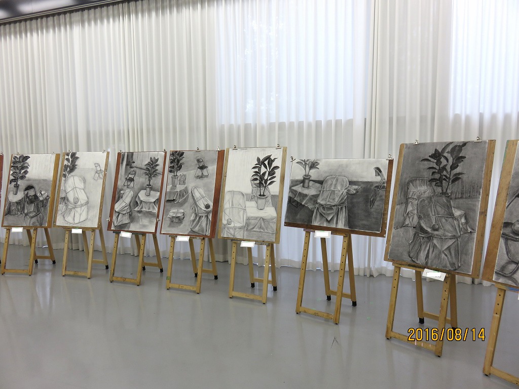 ※本当に構図や描き方とは人さまざまですね。多分近くで見ると自分の巧拙ばかり気にして感じにくいことかも知れませんが、こうして全体を見せていただくと本当に皆さん粘り強く頑張っておられますし、なによりも木炭の色が美しいですね。
