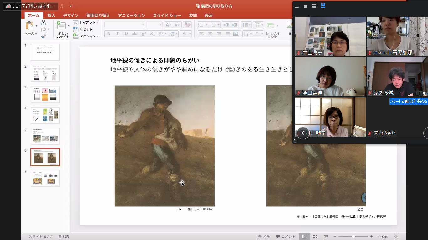 担当の由井先生は塑像と油彩に引き続き二度目のzoom授業、準備もとても大変ですが遠隔授業にも随分慣れてこられた様子、ご報告によると充実した授業内容になったようです。